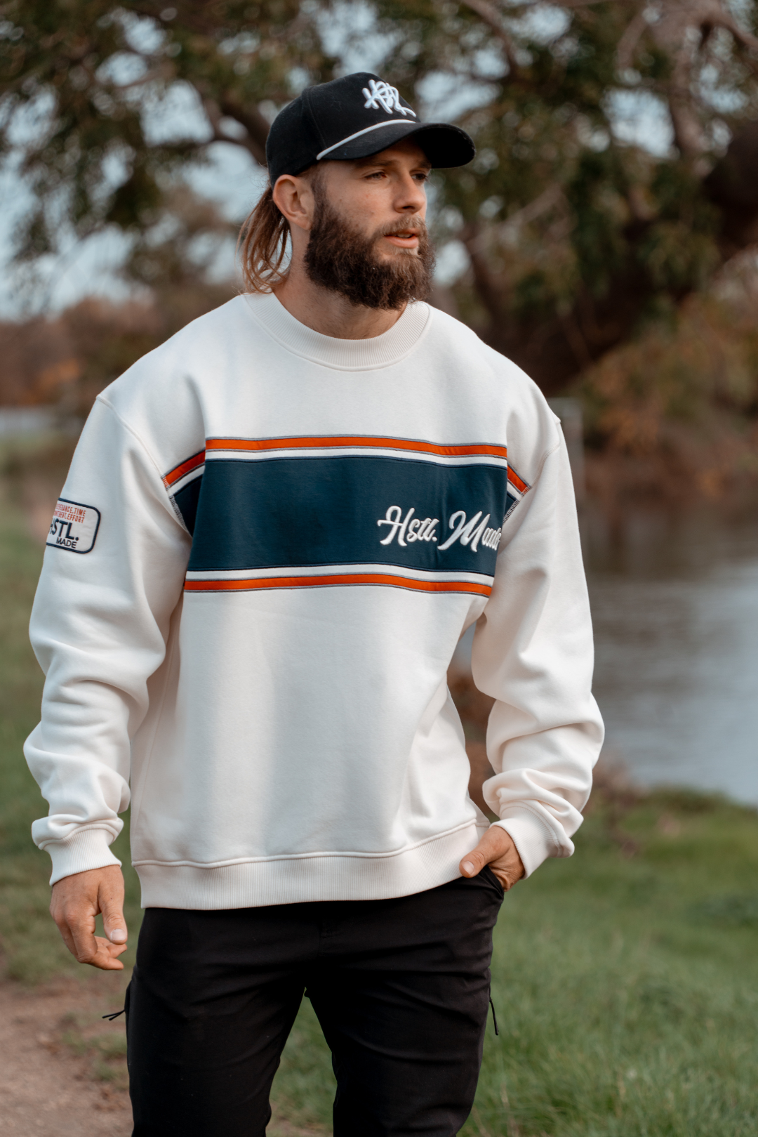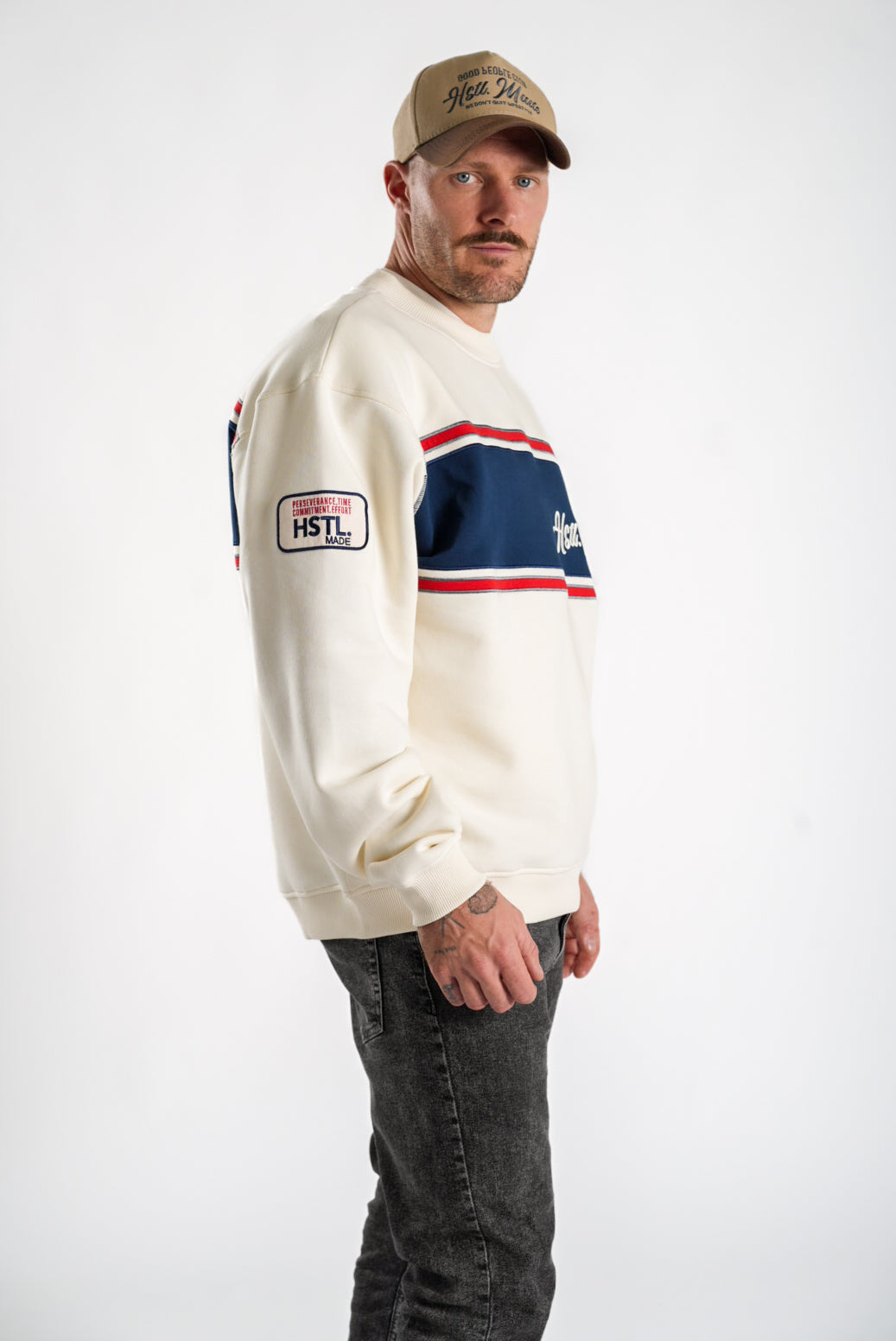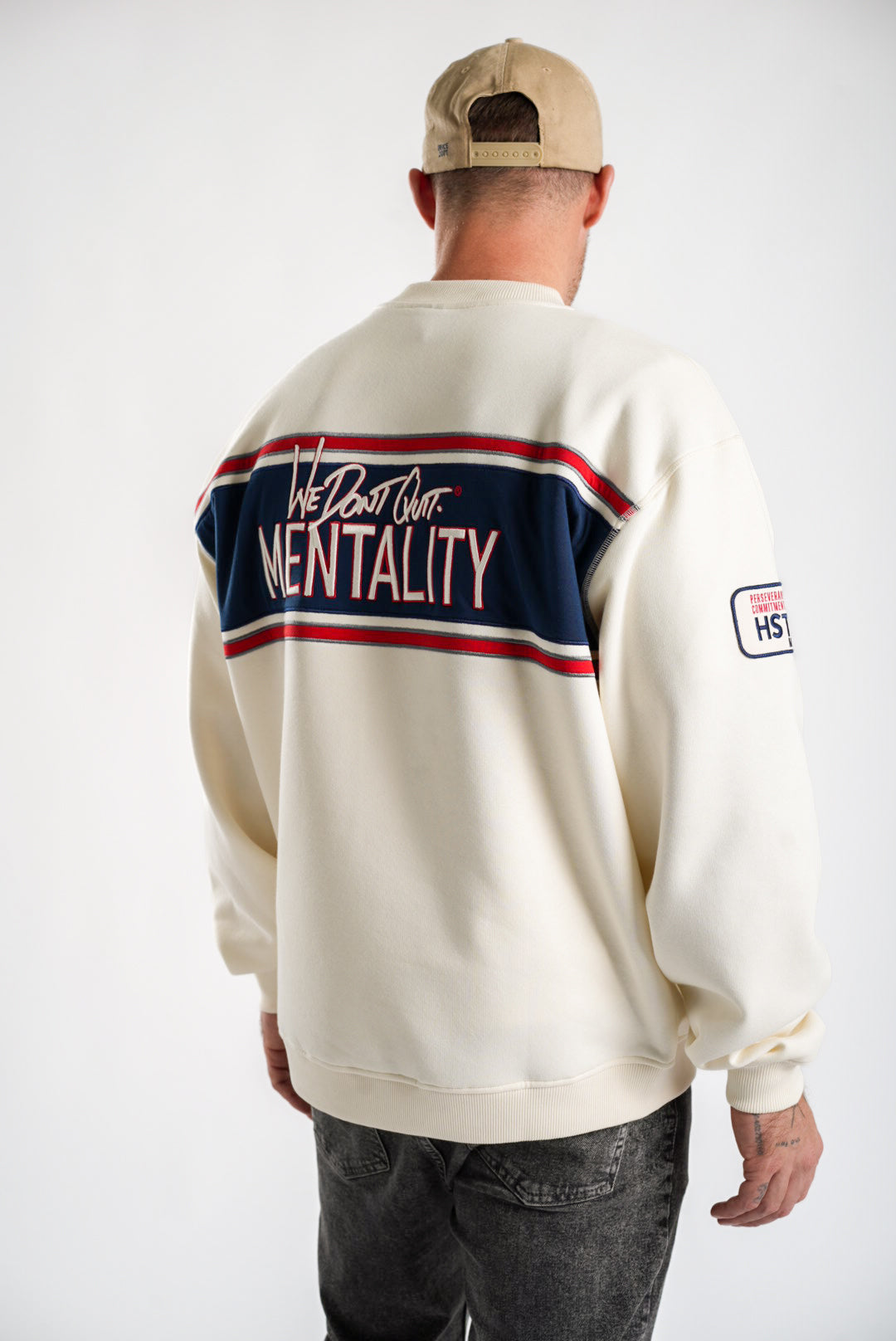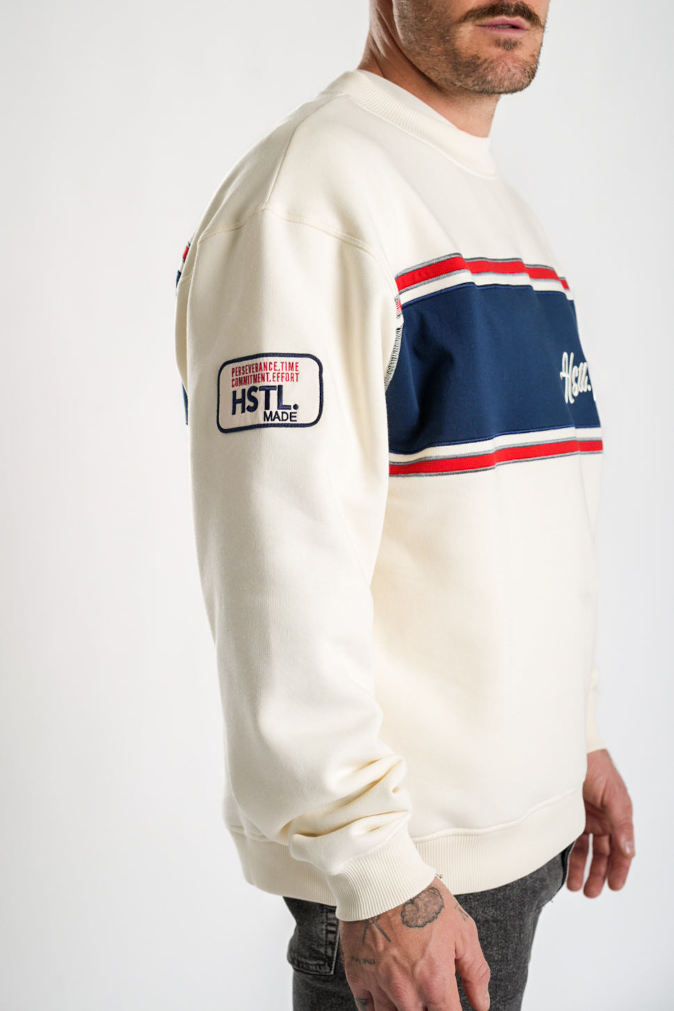 Meet the Heritage Crewneck—where the We Don’t Quit energy makes a comeback in a fresh design. This colour-block style blends effortless edge with ultimate comfort, crafted from a soft blend that keeps its shape wear after wear. Slightly dropped shoulders and ribbed details give it a relaxed, lived-in feel, while embroidered mottos and logos across the front, back, and sleeve serve as a bold reminder of what you’re made of.
